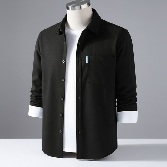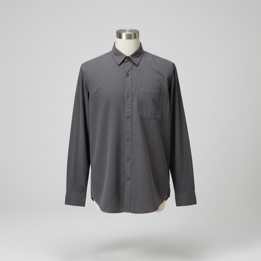 Men's Cotton Twill Overshirt - Minimalist Workshirt Jacket, Long Sleeve Button Down
