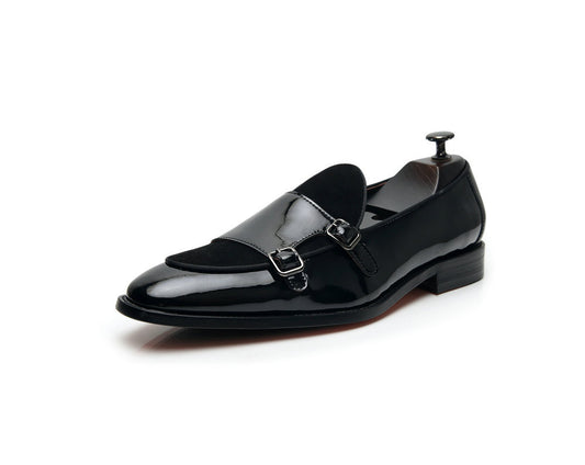 Black Buckle Monk Shoes Leather Low-Cut Loafer Cover Foot Lazy Pointy Pedal Leather Shoes Men