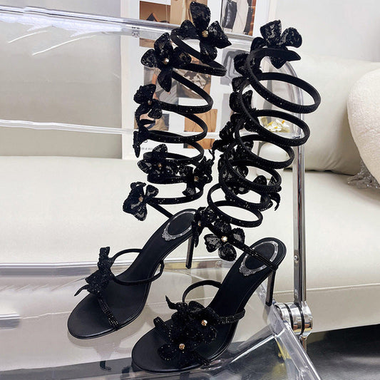 Rhinestone Snake-shaped Strip Winding Sexy Stiletto Heel Catwalk Sandals