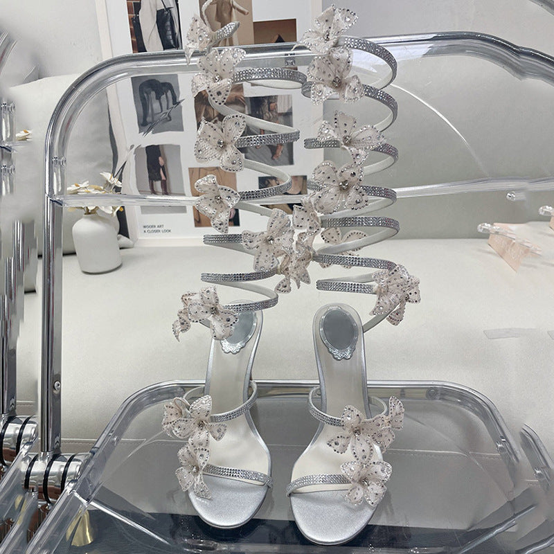 Rhinestone Snake-shaped Strip Winding Sexy Stiletto Heel Catwalk Sandals